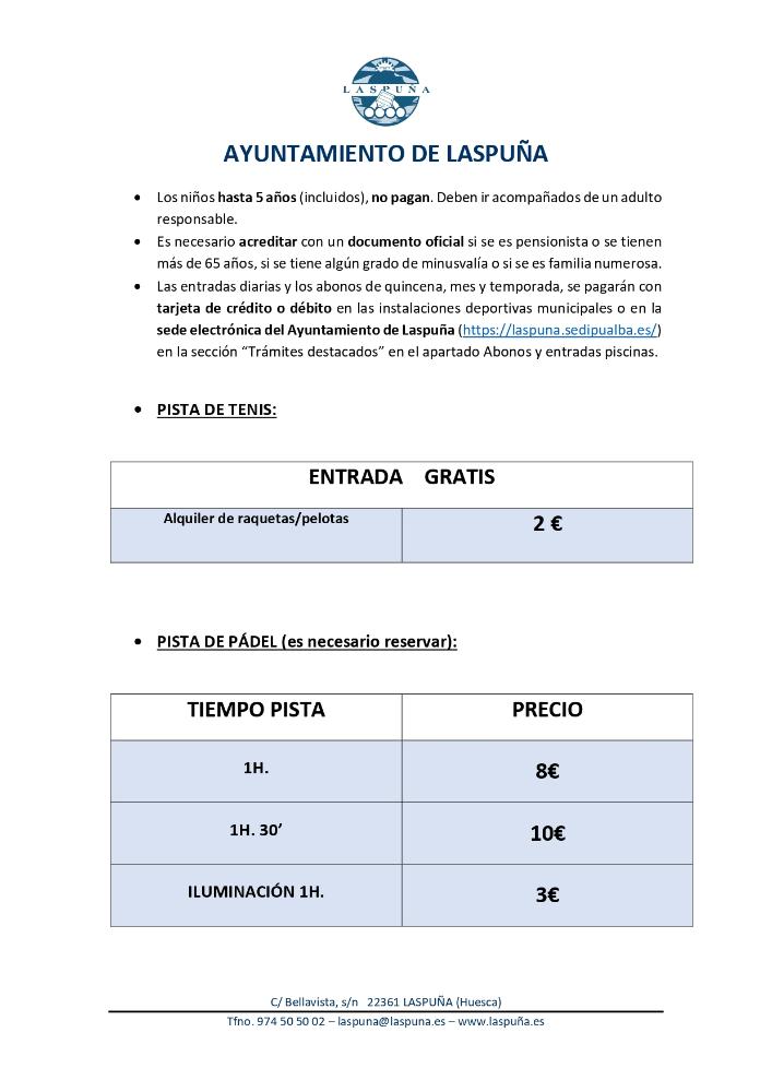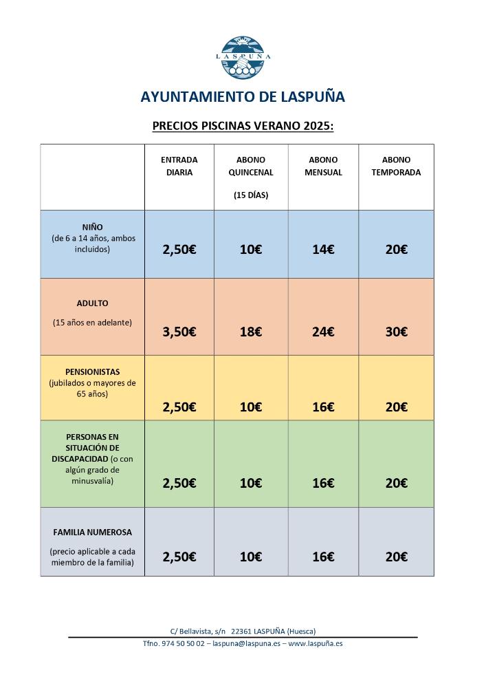 Las entradas diarias y los abonos de quincena, mes y temporada, se pagarán con tarjeta de crédito o débito en las instalaciones deportivas municipales o en la sede electrónica del Ayuntamiento de Laspuña (https://laspuna.sedipualba.es/) en la sección “Trámites destacados” en el apartado Abonos piscinas.