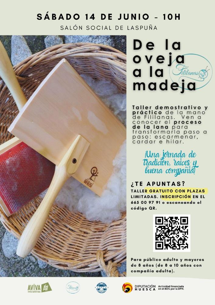 El sábado 14 de junio a las 10h. en el salón social del Ayuntamiento se celebrará un taller demostrativo y práctico para conocer el proceso de transformar la lana en hilo. Las artesanas de Filianas del Valle de Chista nos enseñarán a escarmenar, cardar e hilar.