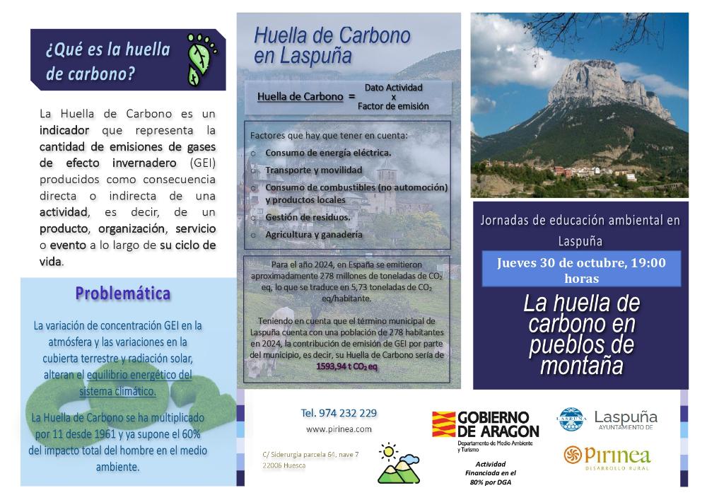 El ayuntamiento informa de la celebración de una jornada de educación ambiental en Laspuña titulada "La huella de carbono en pueblos de montaña".