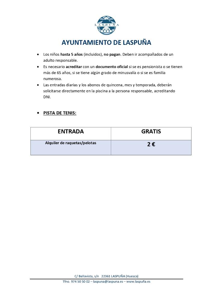 La zona deportiva de Laspuña consta de dos piscinas, pista de tenis, campo de fútbol, ping pong, red de voleibol y pista de pádel (para poder jugar hay que registrarse y reservar previamente).